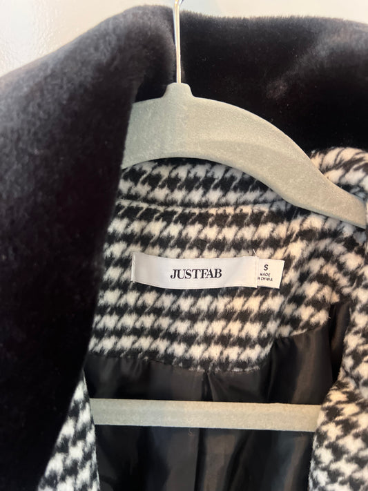 Just Fab Houndstooth Car Coat w Faux Fur Collar Women’s Size Small Black