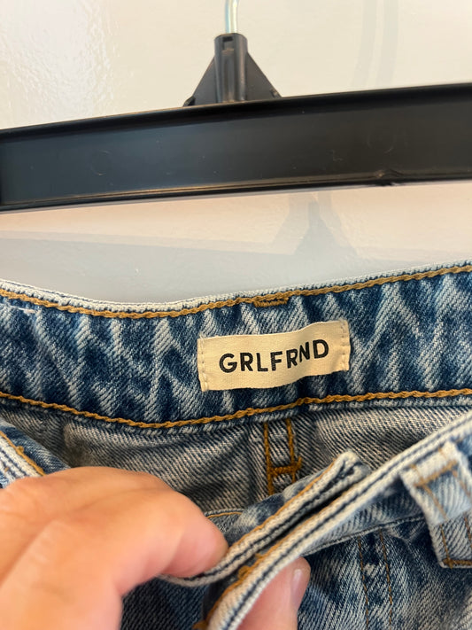 Revolve GRLFRND Denim Distressed Jeans w Raw Hem Women’s Size 26 Mid Wash