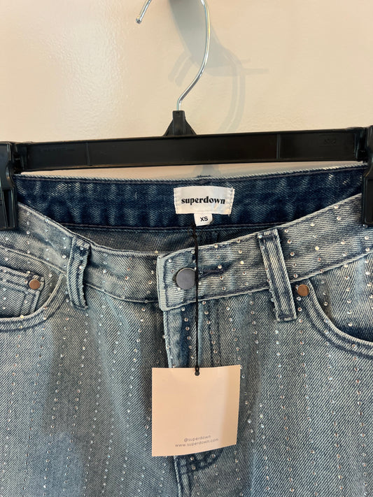 Revolve Superdown Ileen Crystal Jean Women’s Size XS Light Wash NWT