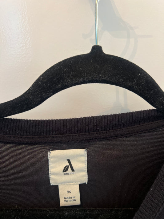 Ribbed Crewneck Long Sleeve Midi Dress w Cinched Sides Women’s Size XS Solid Black