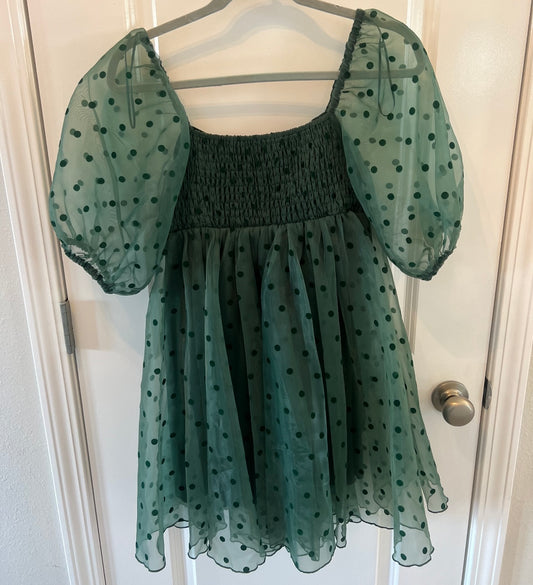 Bohme Polka Dot Layered Tulle Baby Doll Dress w Puff Sleeves Women’s Size Small Emerald