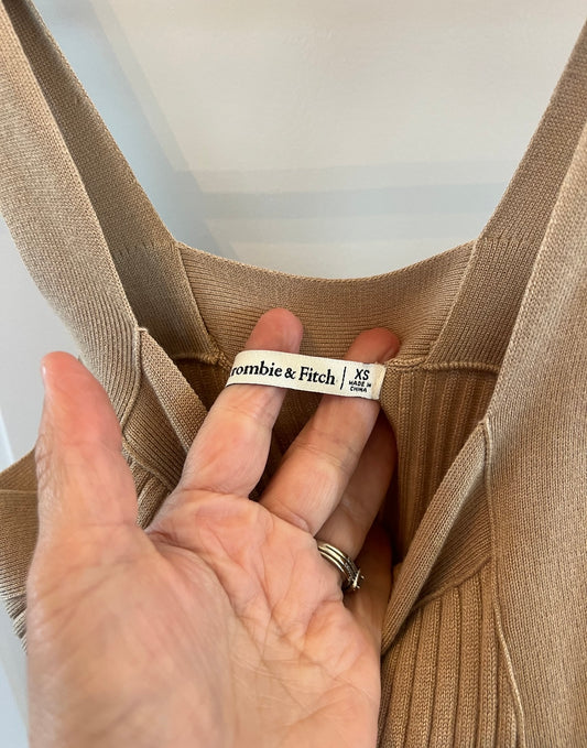 Abercrombie & Fitch Ribbed Knit Midi Dress w Slit Women’s Size XS Tan