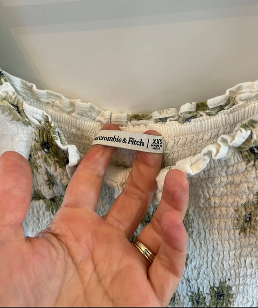 Abercrombie & Fitch Puff Sleeve Smock Dress Women’s Size XXS White Green