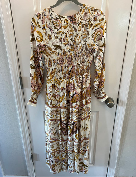 Bohme Floral Paisley Long Sleeve Dress Women’s Size XS White Gold