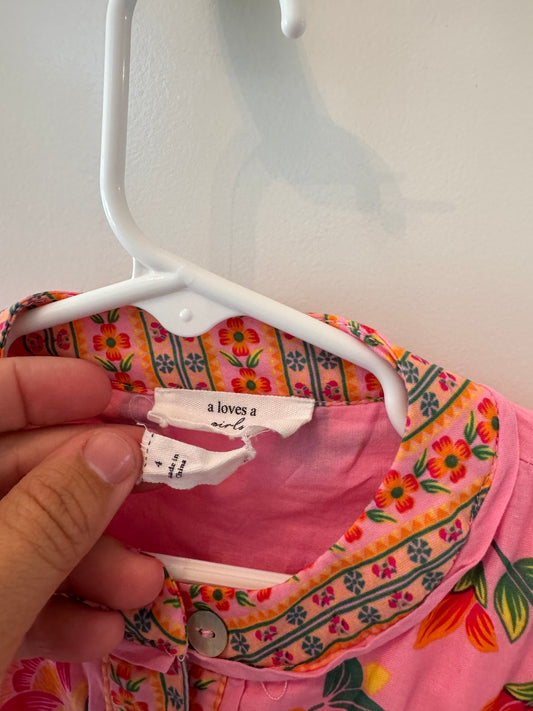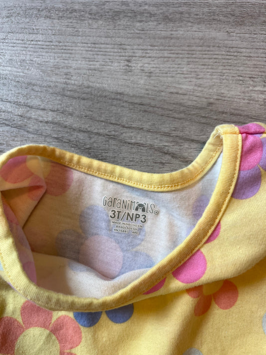70s Flower Short Sleeve Dress Toddler Girl Size 3T Pastel Yellow
