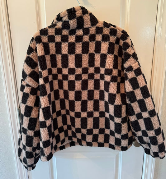 A New Day Checker Print Full Zip Fleece Jacket Women’s Size Large Pink Black