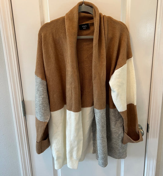 Vici Colorblock Oversize Open Cardigan Women’s Size Small Brown