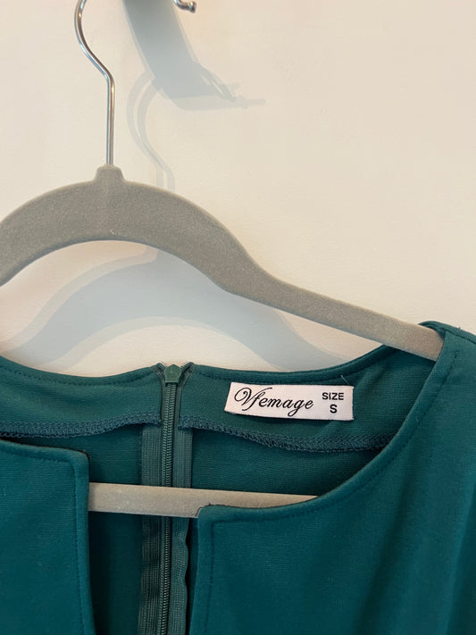 Deep VNeck Knee Length Bodycon Slim Dress Women’s Size Small Teal