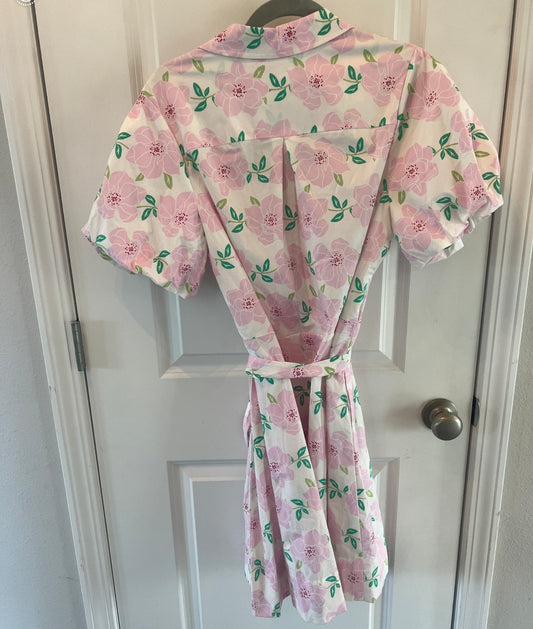 Draper James RSVP Puff Sleeve Button Front Dress Floral Women’s Size Large 12-14 Pink