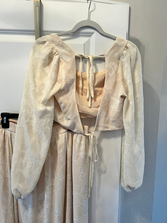 Floral Matching Set Maxi Skirt w Crop Top Women’s Size Large Cream