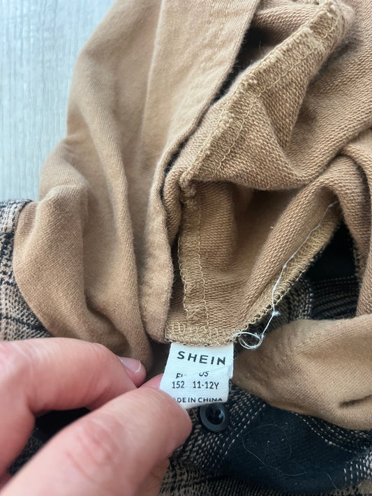 Hooded Flannel Button Front Long Sleeve Shirt Youth Boy’s Size 11-12 Years Tan