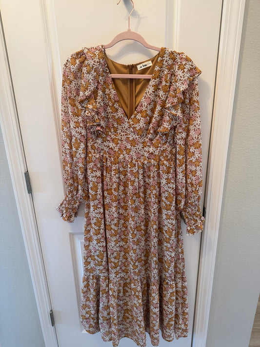 In Bloom Floral Midi Dress Women’s Medium Tan