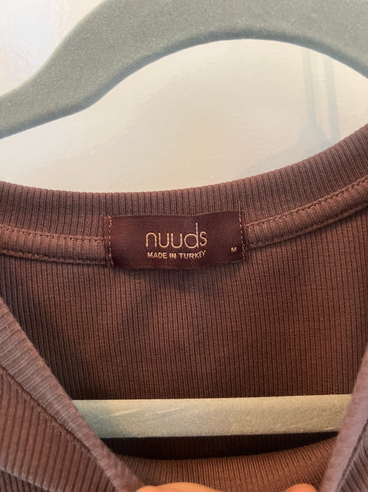 NUUDS Ribbed Short Sleeve Crop Top Women’s Size Medium Brown