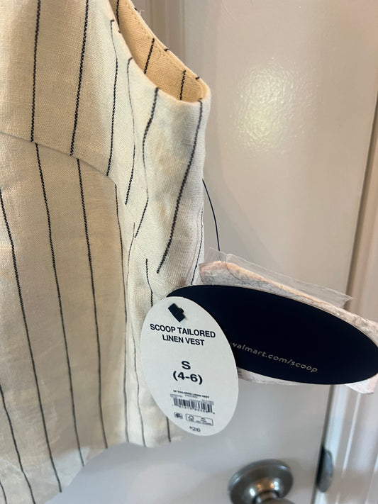 Pinstripe Scoop Tailored Linen Vest Women’s Size Small Cream