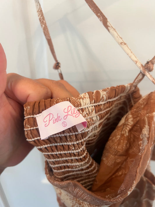 Pink Lily Floral Smock Mini Dress Women’s Size Small White Blue