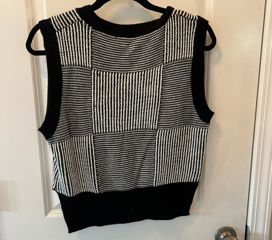 Checkerboard Print Knit Sweater Vest Women’s Size Small Black