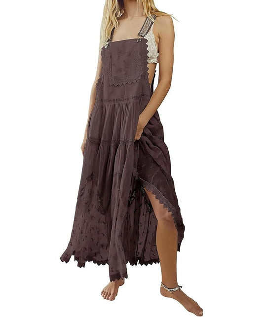 Ebossy Lace Tulle Bib Dress Women’s Small Coffee