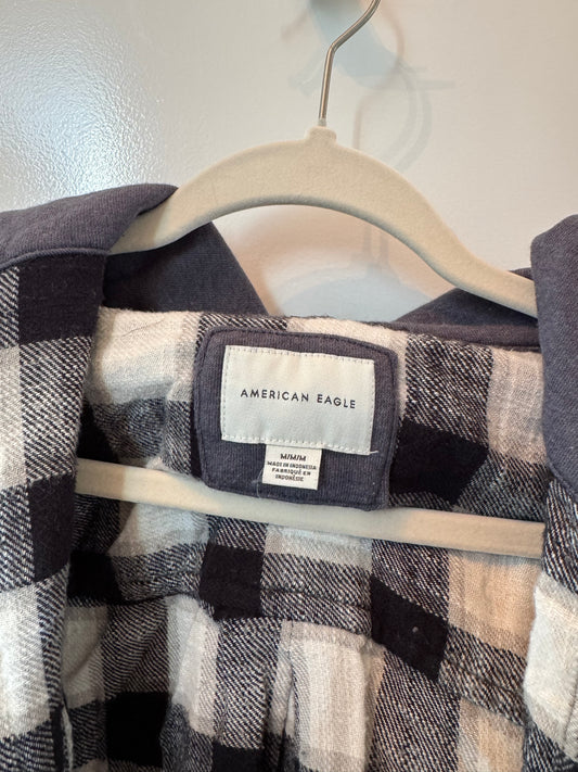 American Eagle Plaid Hooded Top Women’s Medium Gray