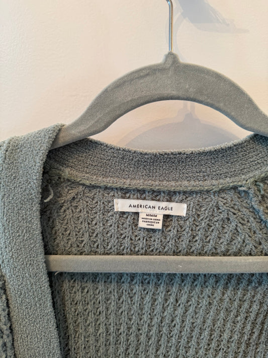 American Eagle Waffle Knit Cardigan Sweater Women’s Size Medium Sage Green