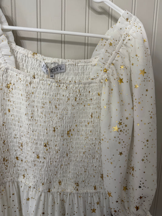 Ivy City Metallic Star Dress Women’s XS White NWT