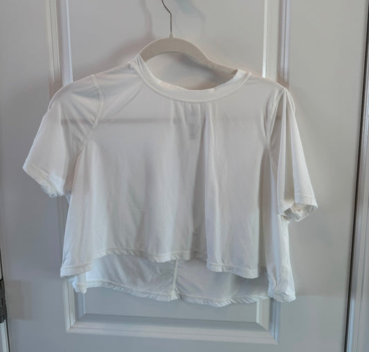 Mono B Cropped Short Sleeve Active Top Women’s Size Small White