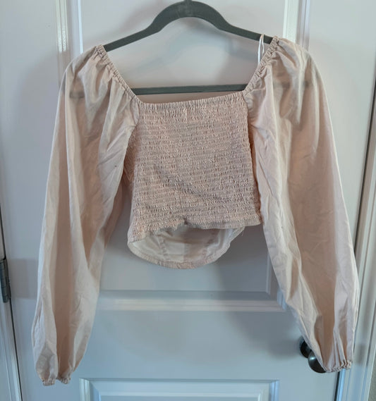 Cropped Smock Top w Puff Sleeves Women’s Size Small Beige