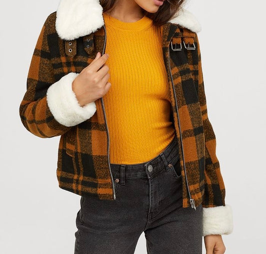 H&M Paid Jacket Faux Shearling Collar Women’s Medium