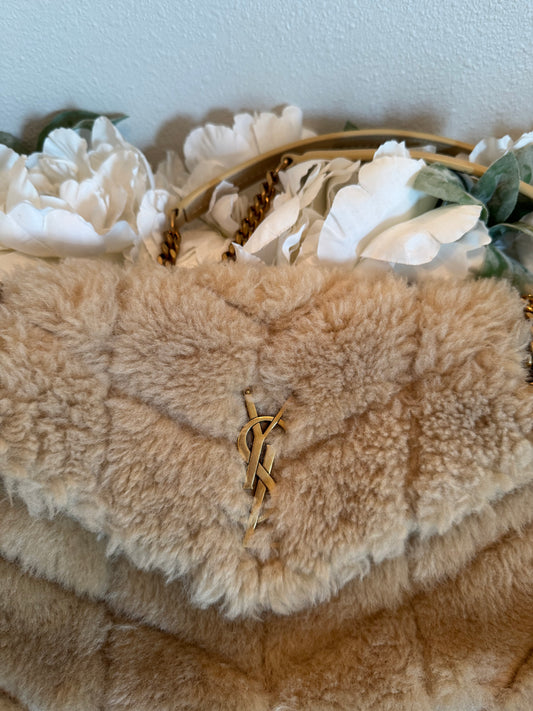 YSL Yves Saint Laurent Loulou Puffer Shoulder Bag Quilted Shearling Medium