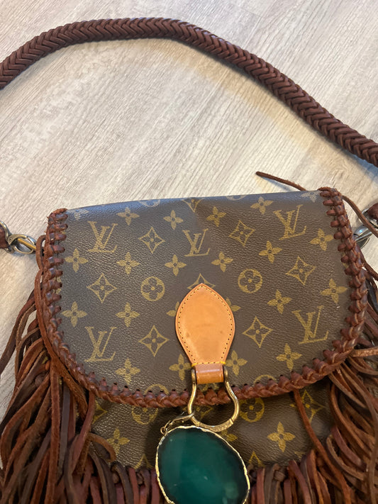 Authentic Upcycled Louis Vuitton Material Fringe Crossbody Handbag Brown
