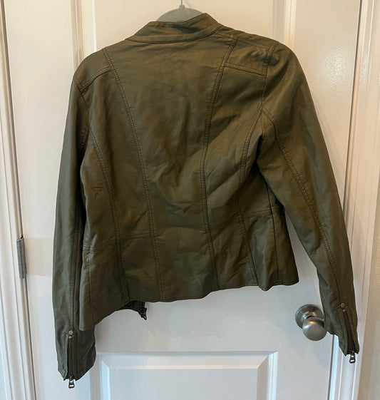 Faux Leather Moto Jacket Women’s Medium Olive Green