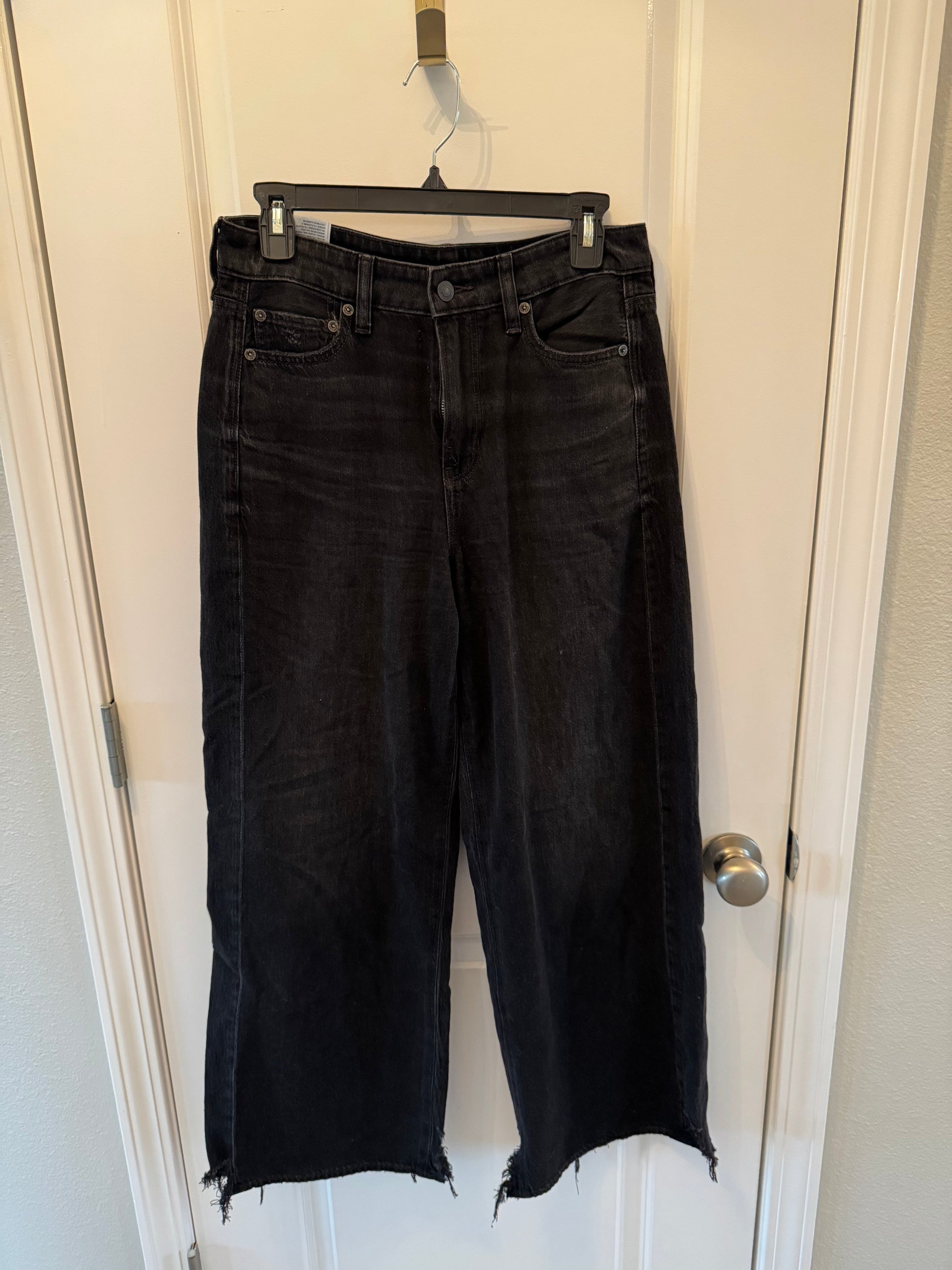 American Eagle Wide Leg Jeans w Raw Hem Women’s 4 Long Black
