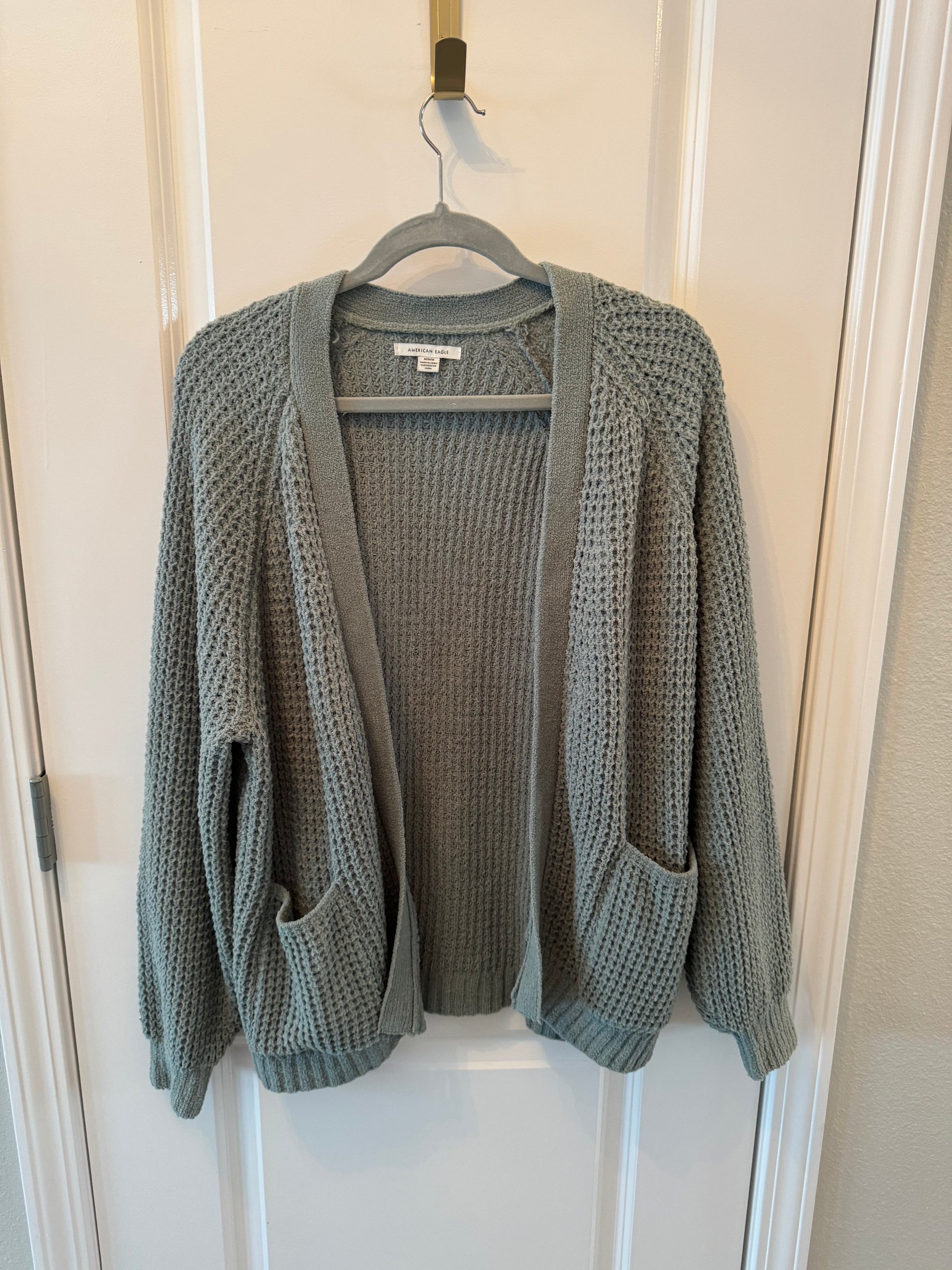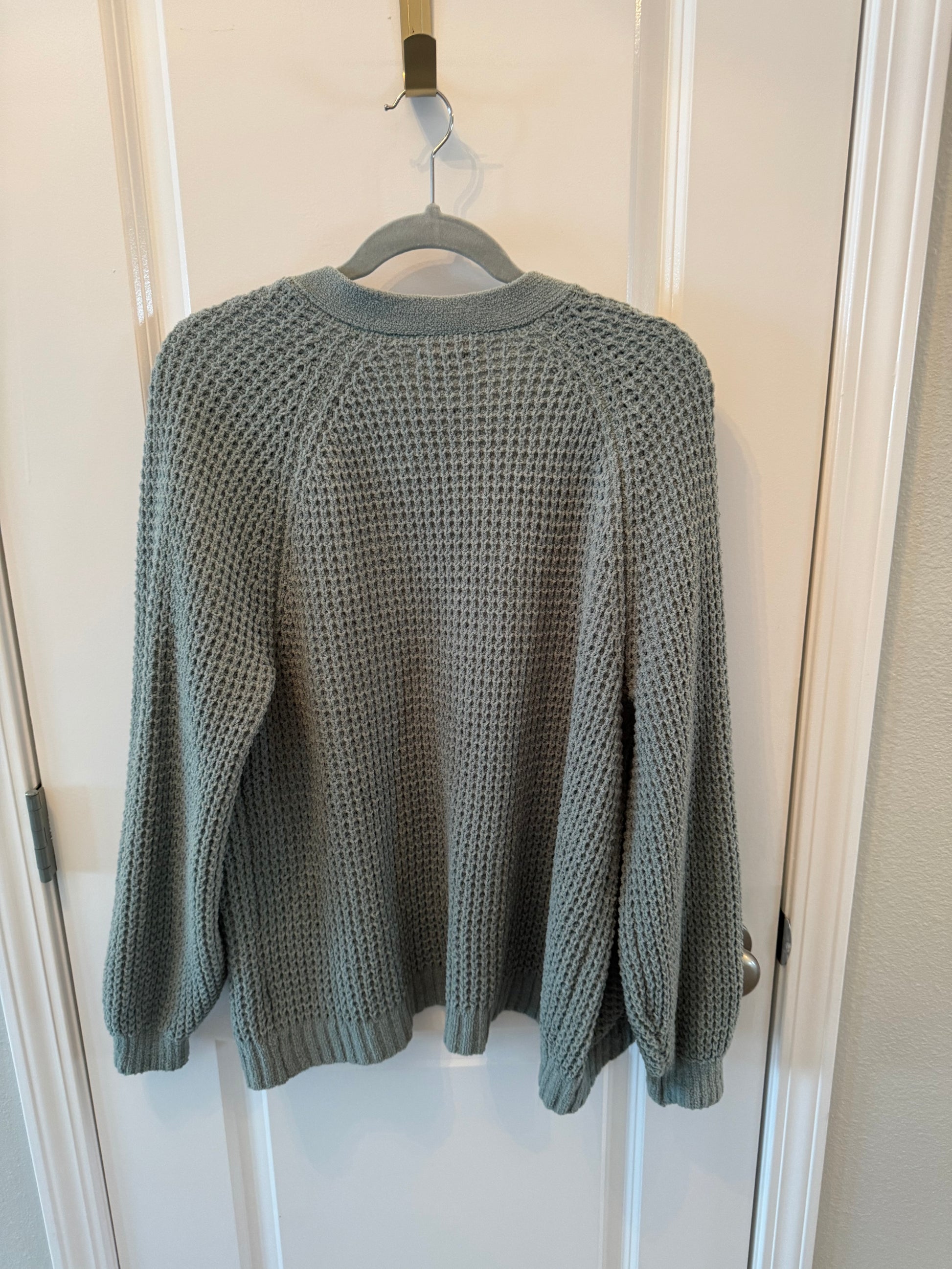 American Eagle Waffle Knit Cardigan Sweater Women’s Size Medium Sage Green