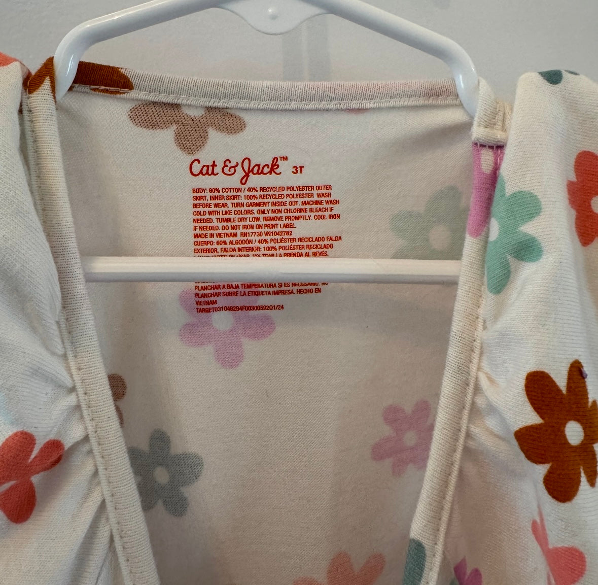 Daisy Print Dress w Tulle Skirt Toddler 3T White