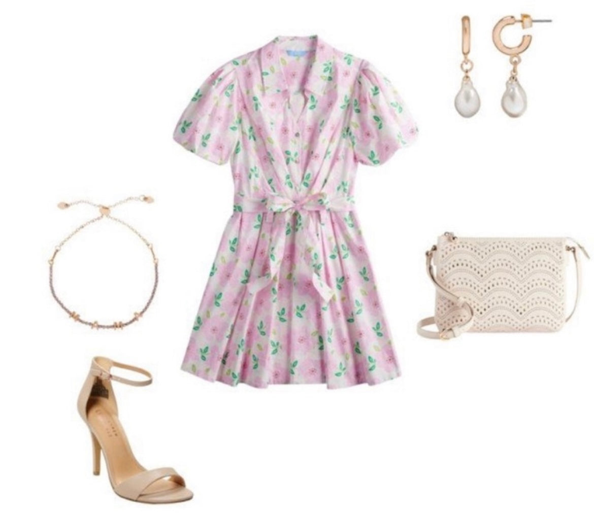 Draper James RSVP Puff Sleeve Button Front Dress Floral Women’s Size Large 12-14 Pink