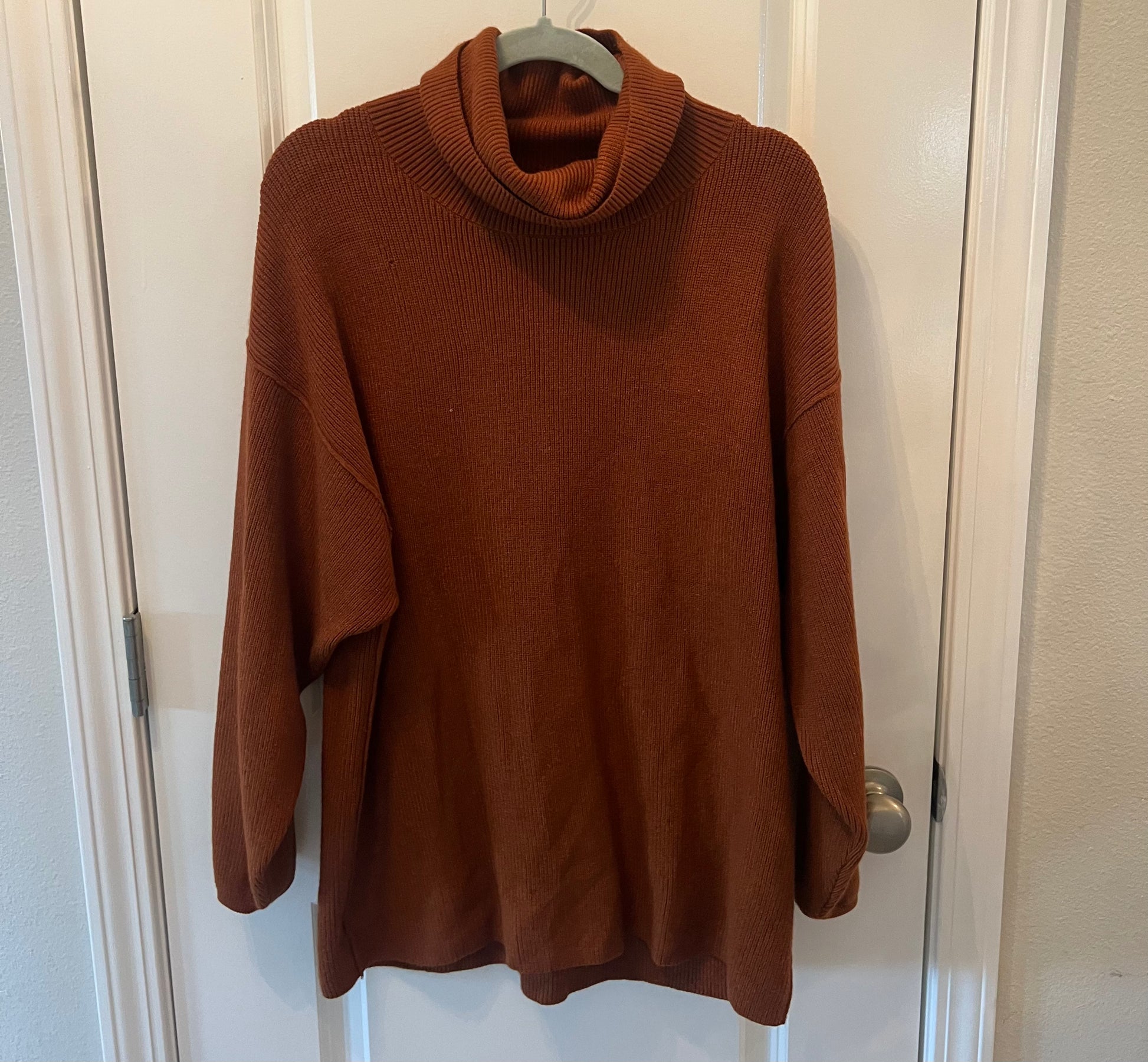 Free People Chunky Knit Sweater Cowl Neck Women’s Small Burnt Rust