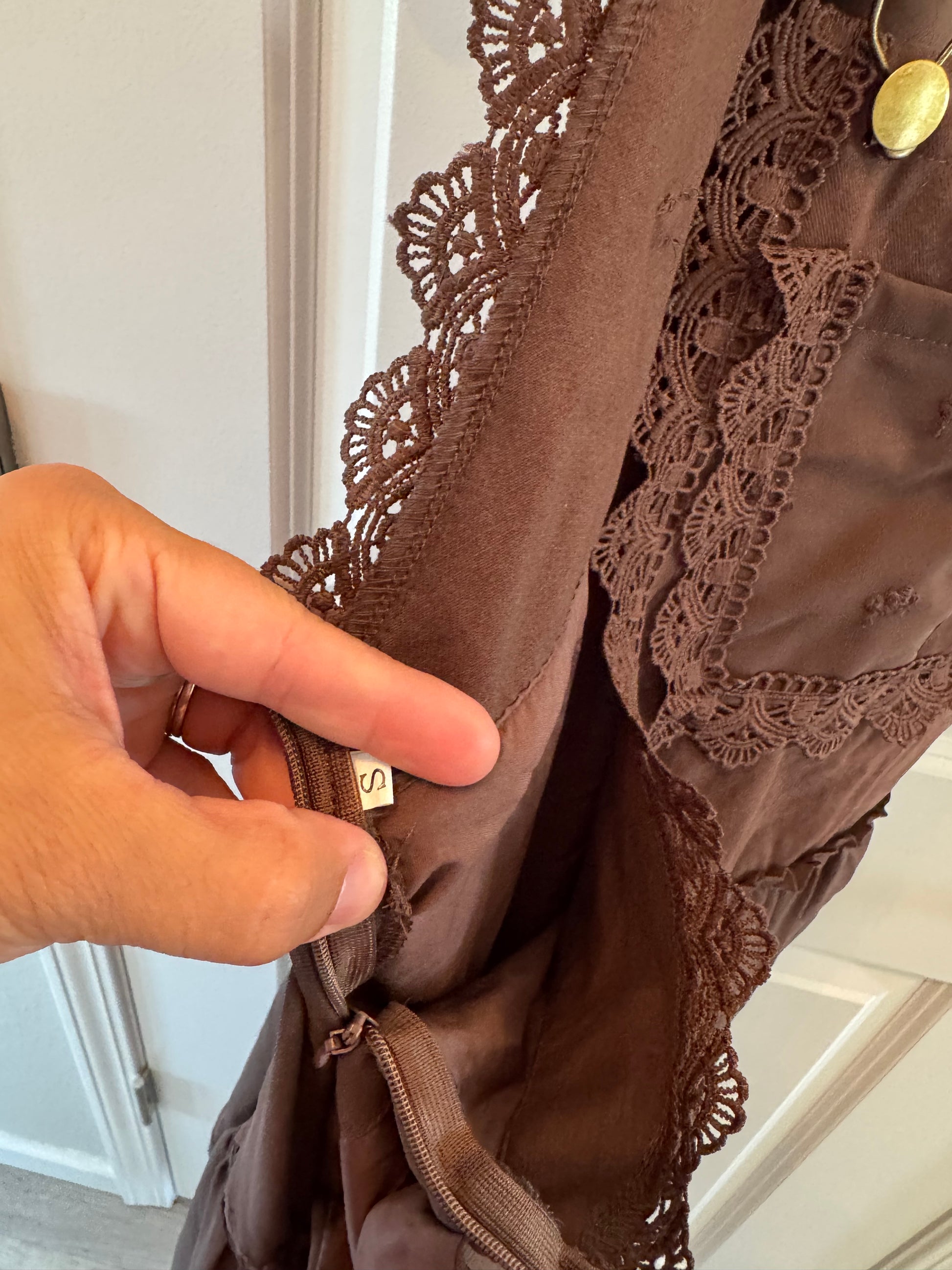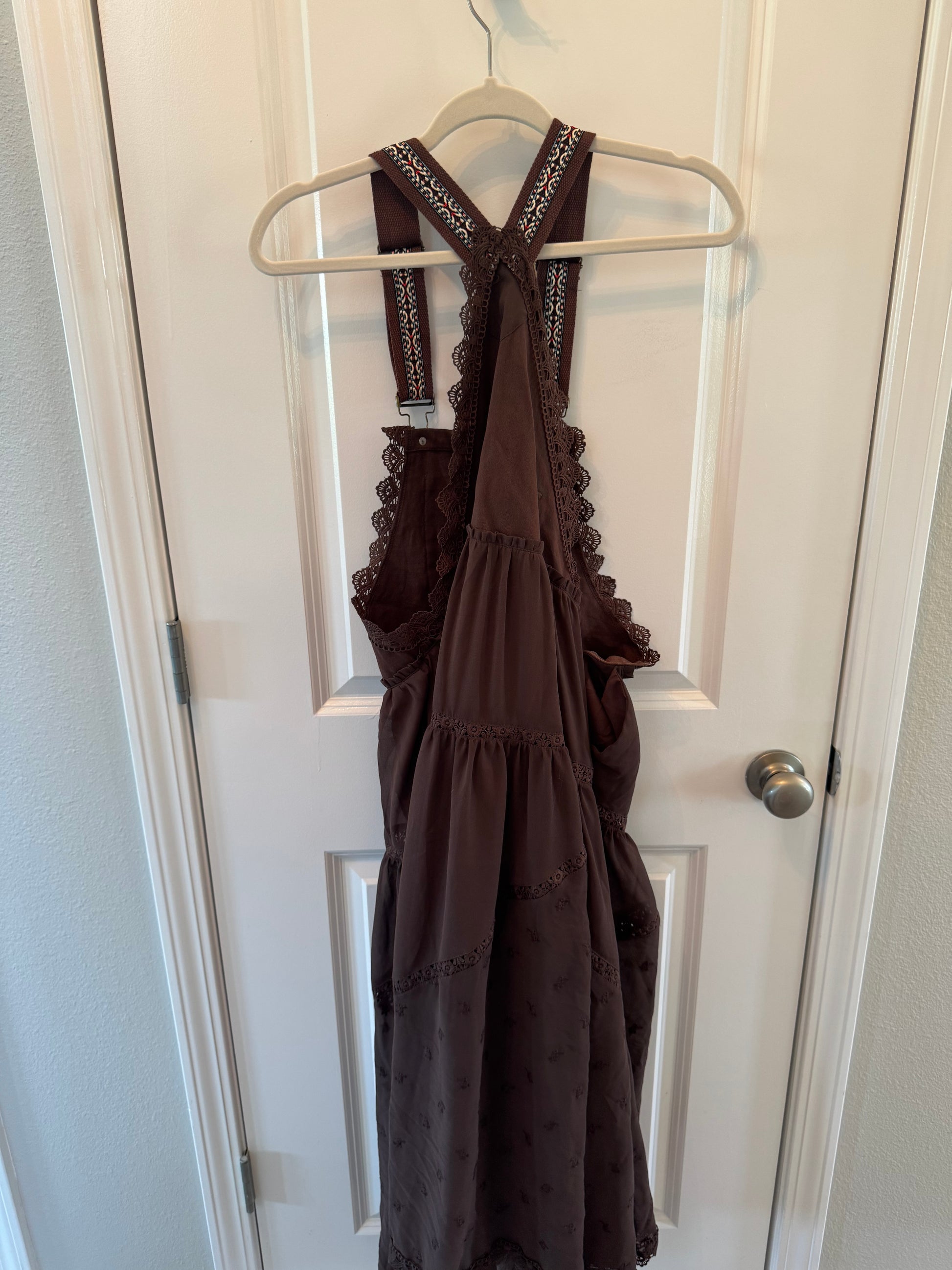 Ebossy Lace Tulle Bib Dress Women’s Small Coffee