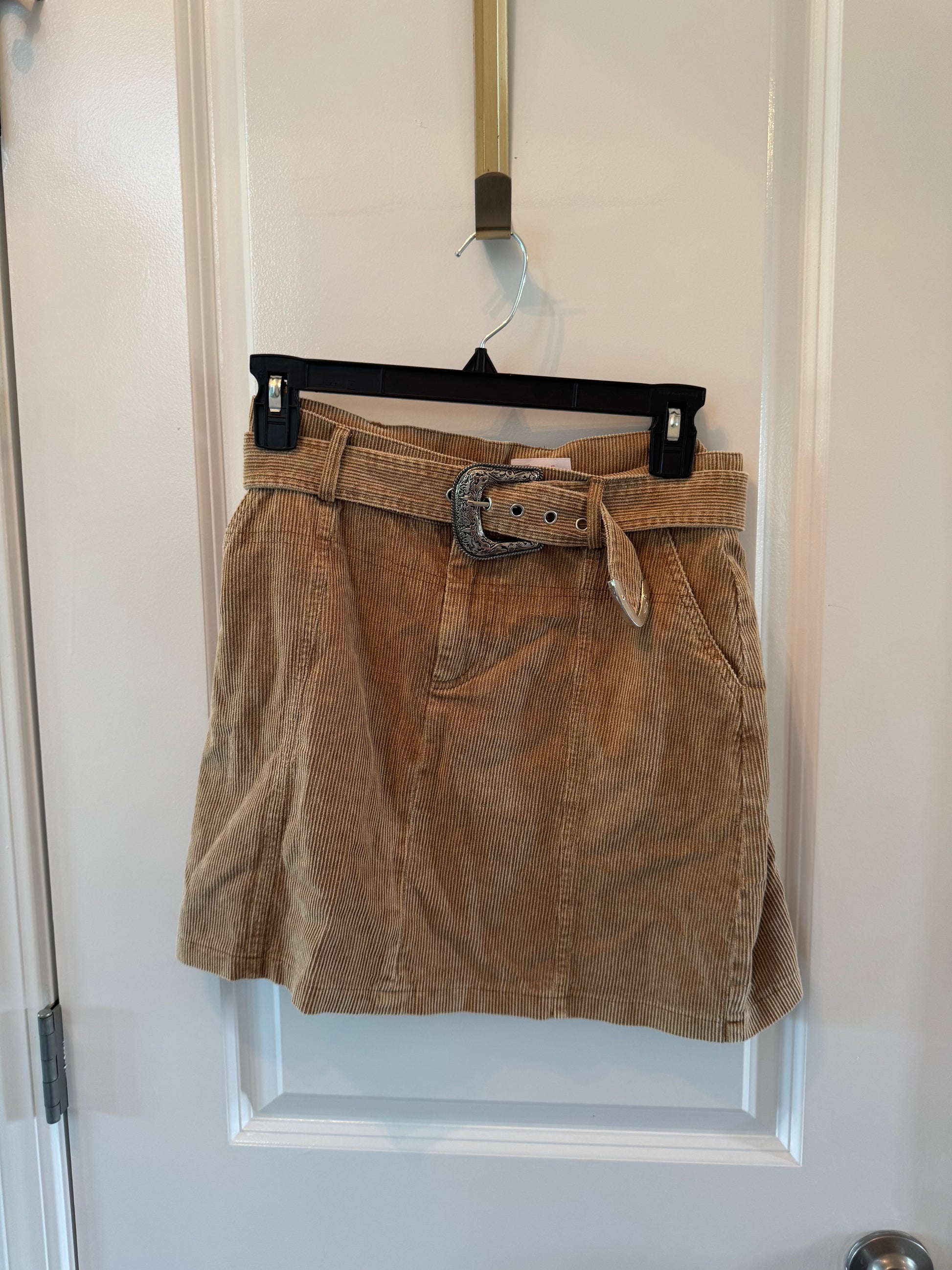 Pink Lily Belted Corduroy Skirt Women’s Small Tan
