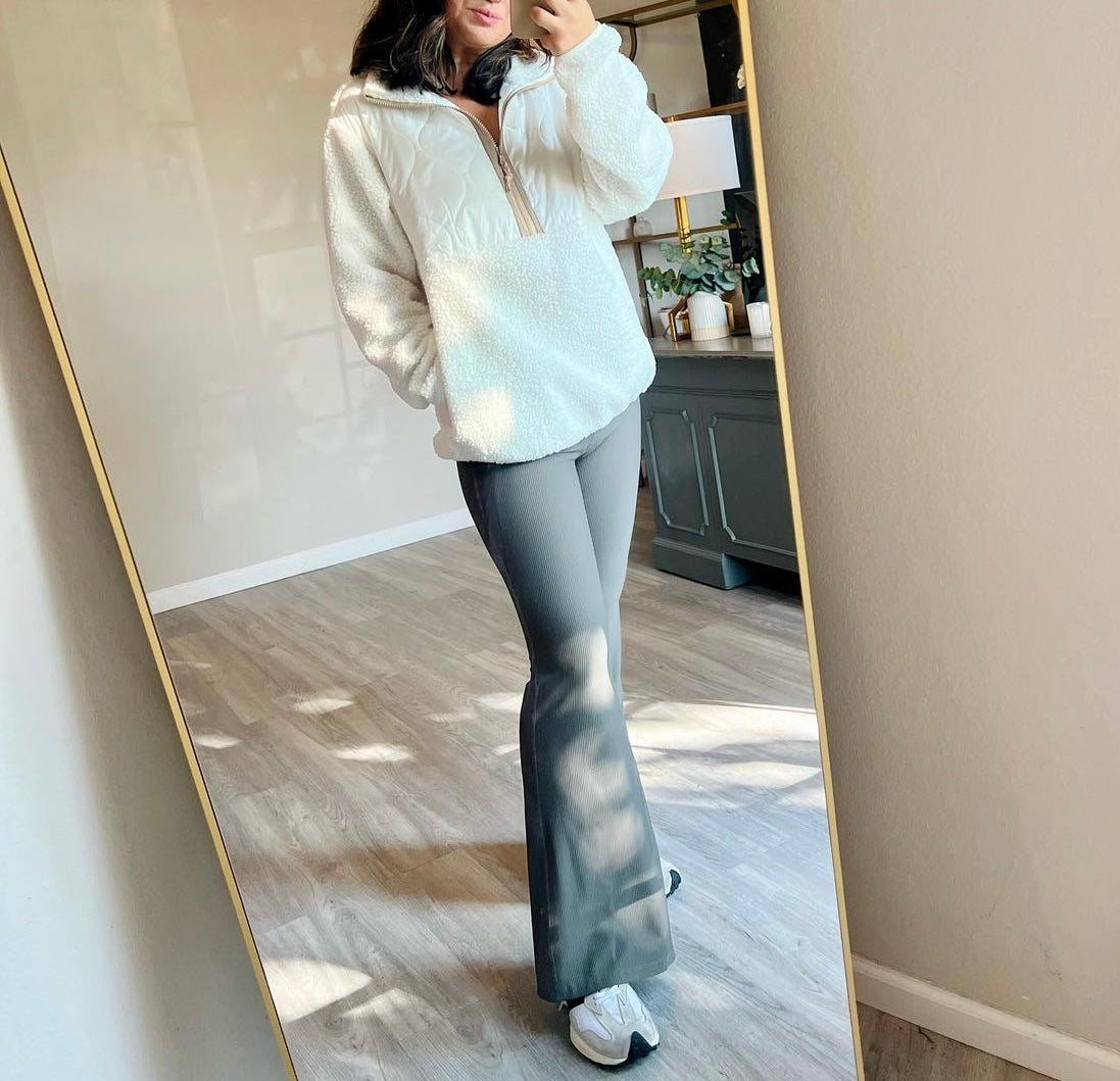 Quilted Quarter Zip Sherpa Pullover Women’s Size Medium Cream