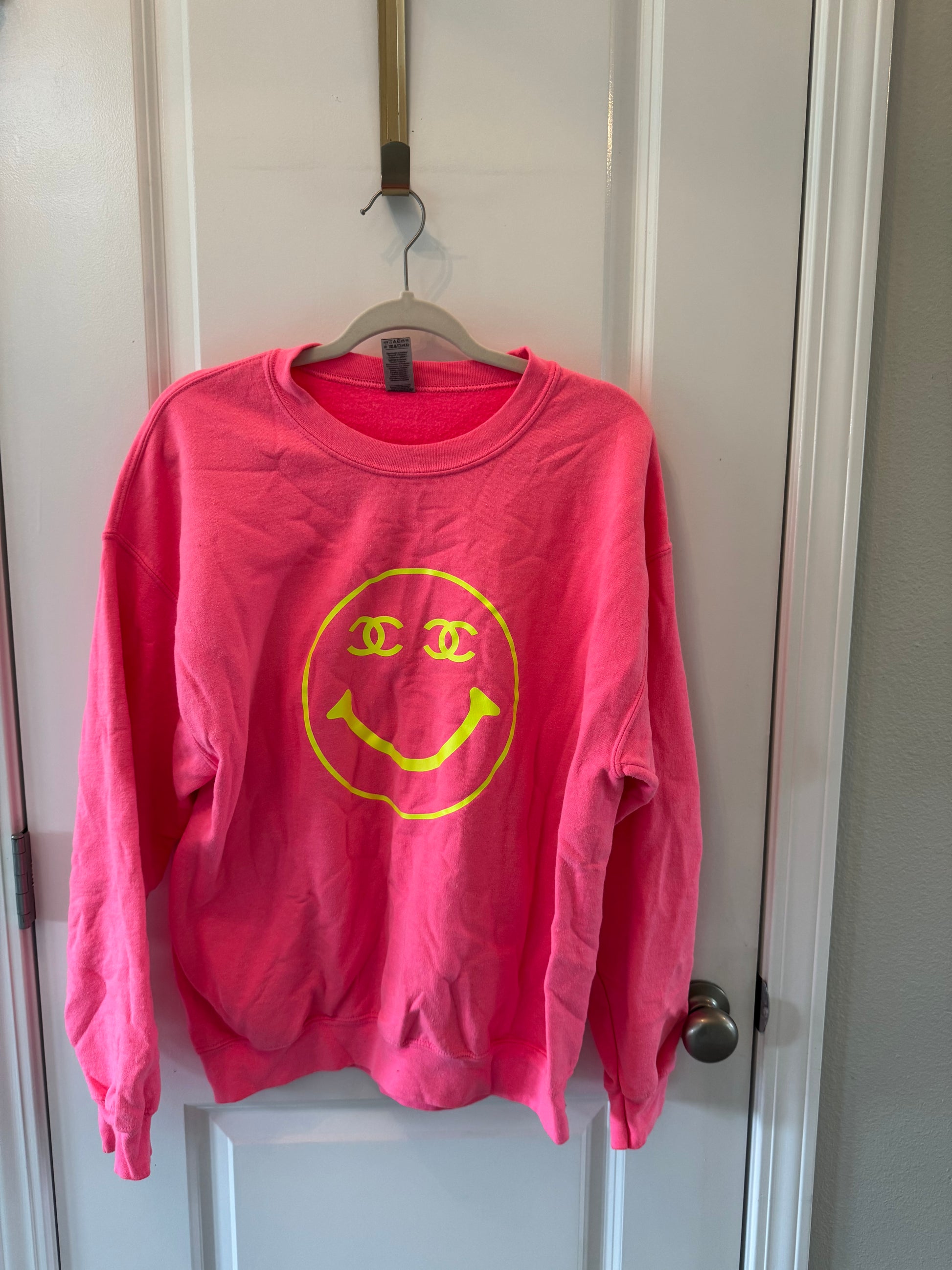 Smiley Face Graphic Sweatshirt Women’s Large Hot Pink
