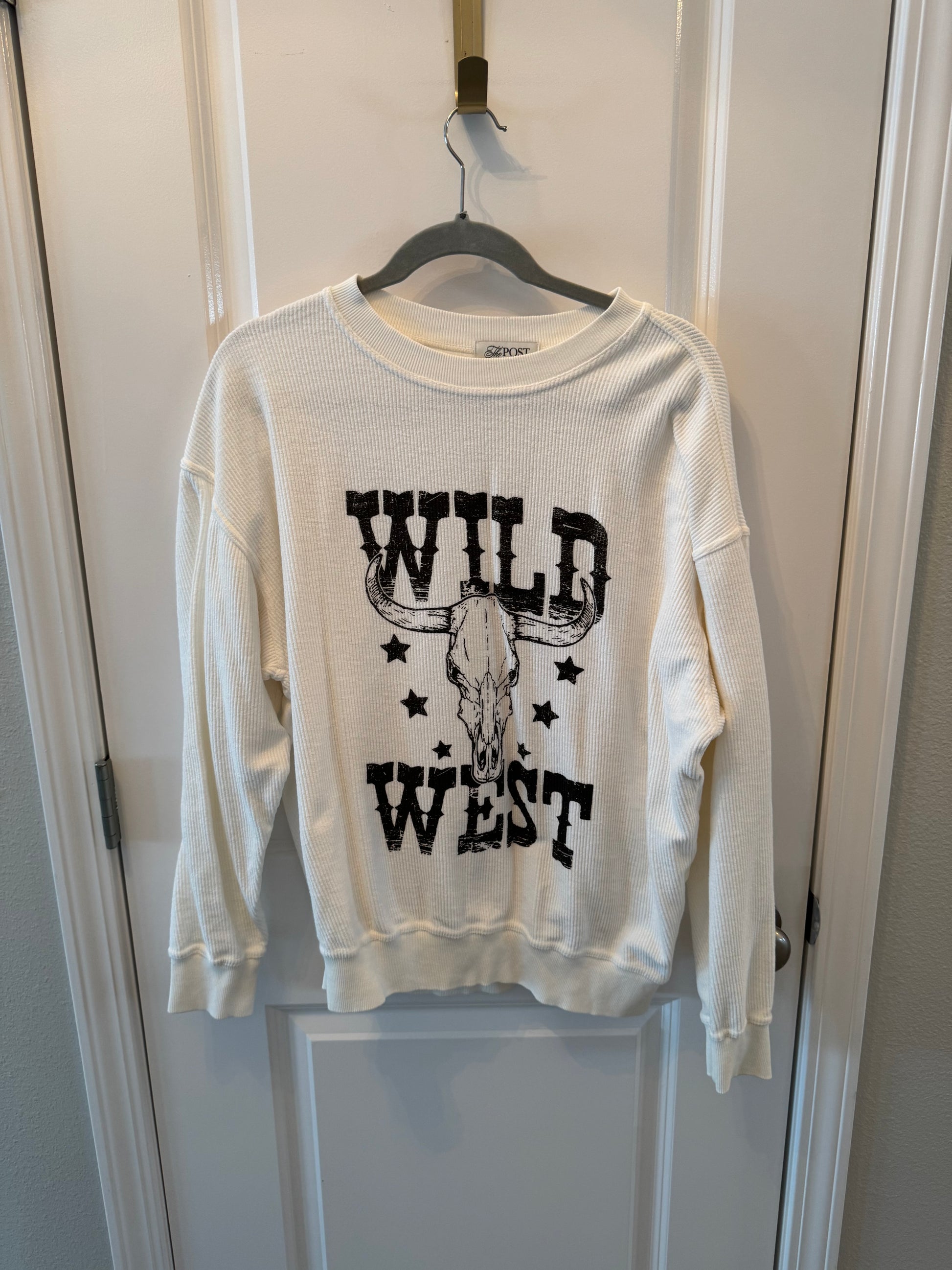 The Post Wild West Graphic Long Sleeve Top Women’s Size Medium White