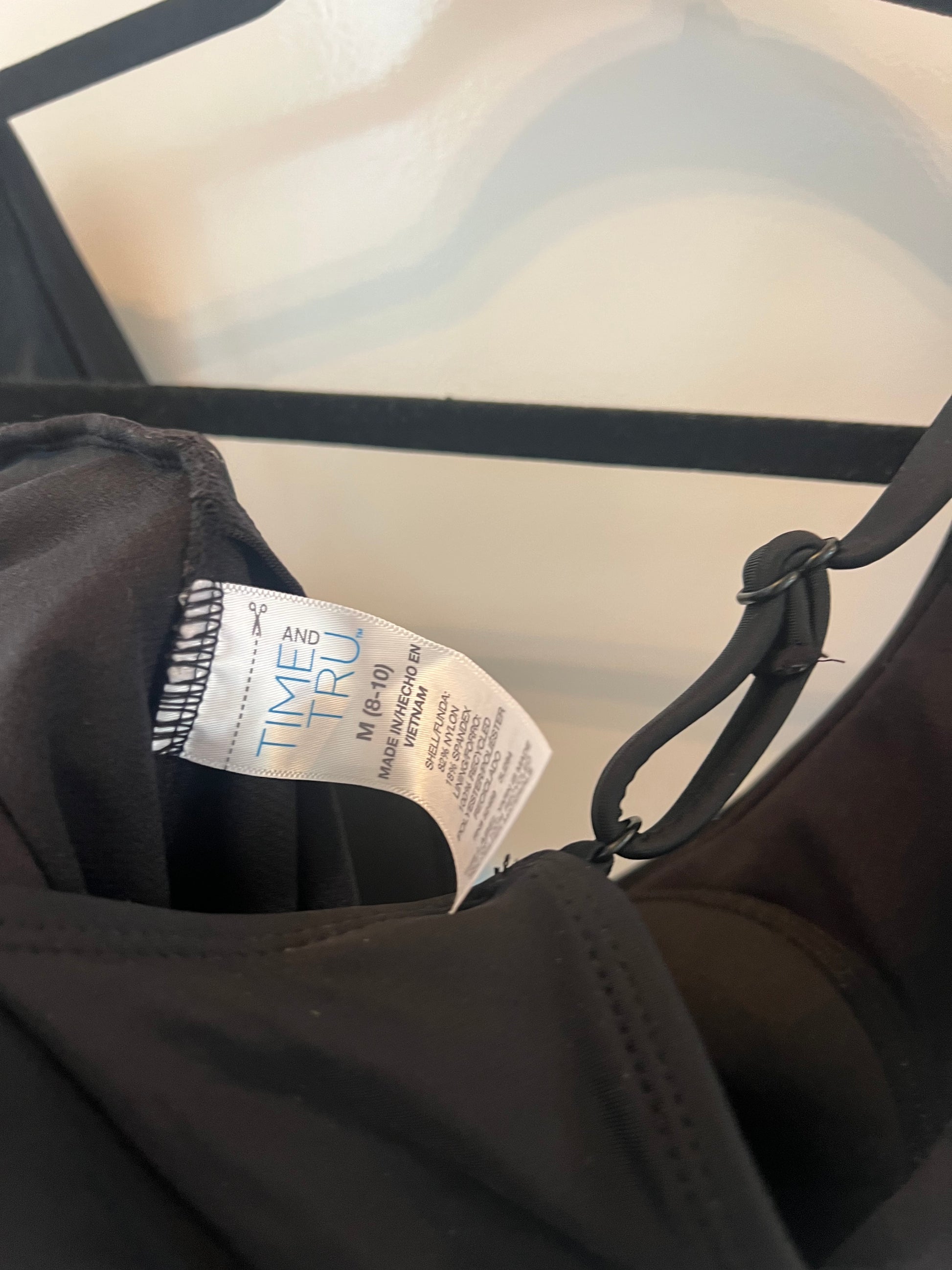 Time & Tru Ruffle Deep V One Piece Swimsuit Women’s Size Medium Black