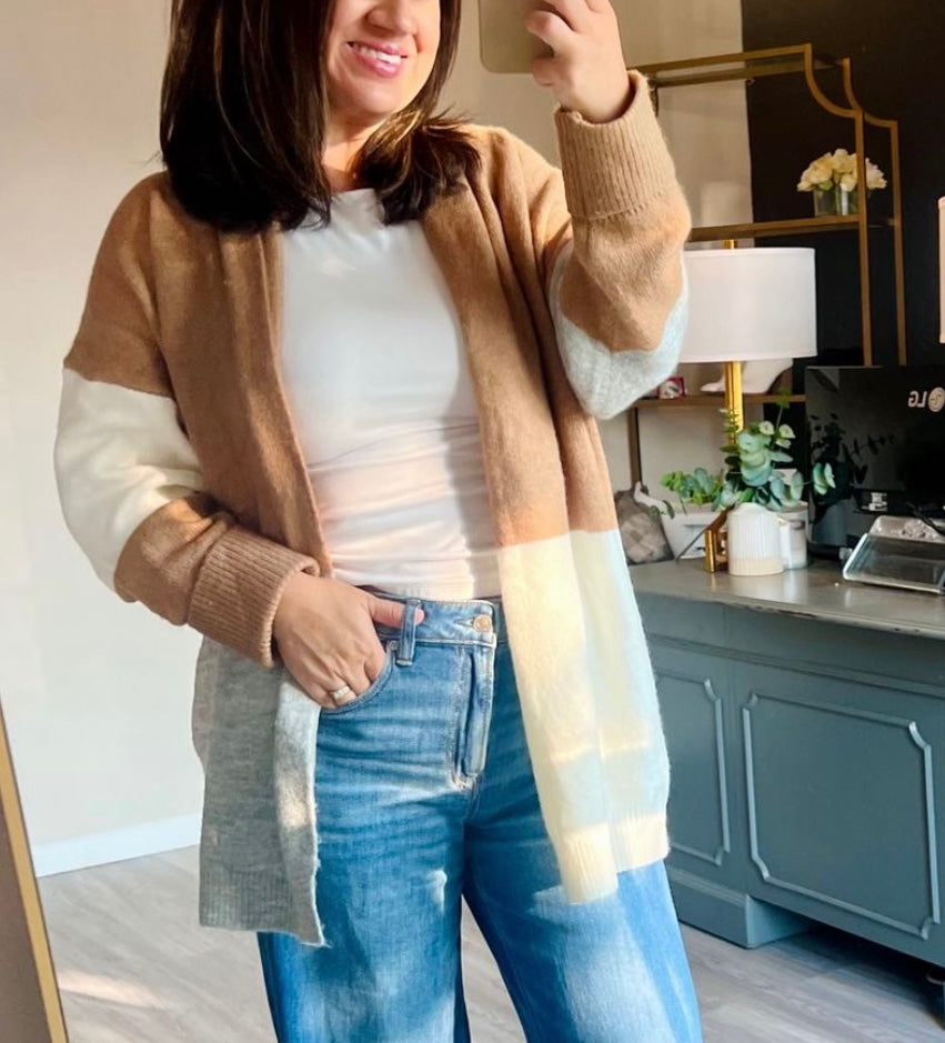 Vici Colorblock Oversize Open Cardigan Women’s Size Small Brown