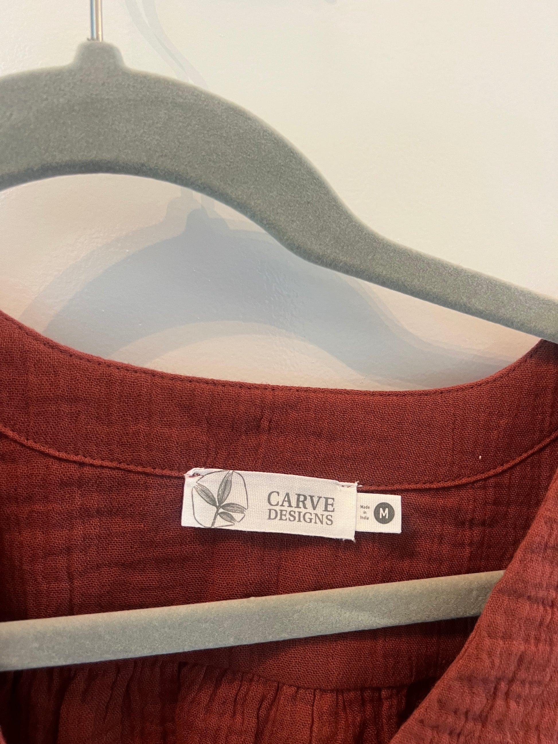 Puff Sleeve Button Front Top Women’s Size Medium Brown