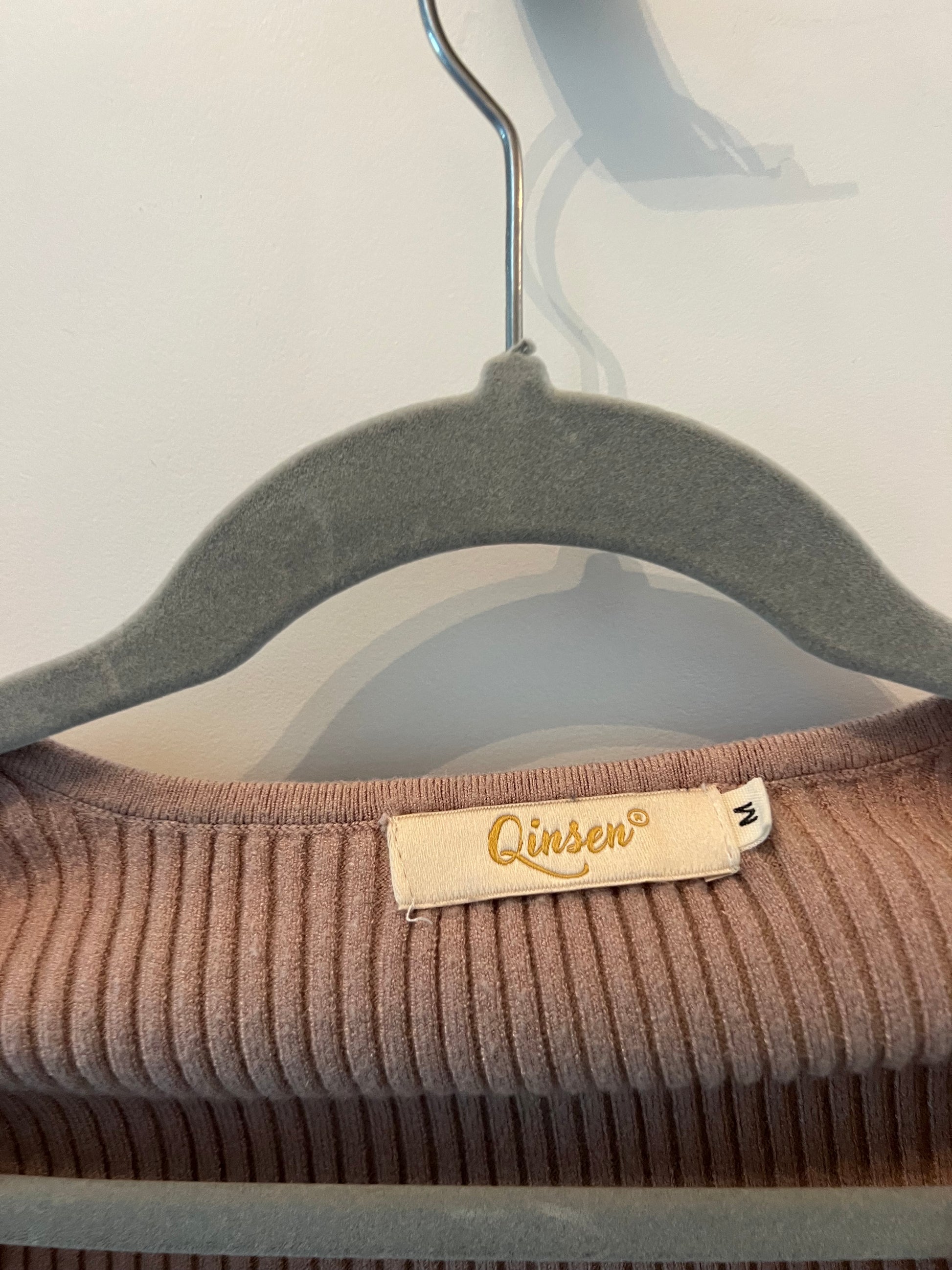 Twist Front Ribbed Cropped Sweater Women’s Size Medium Taupe