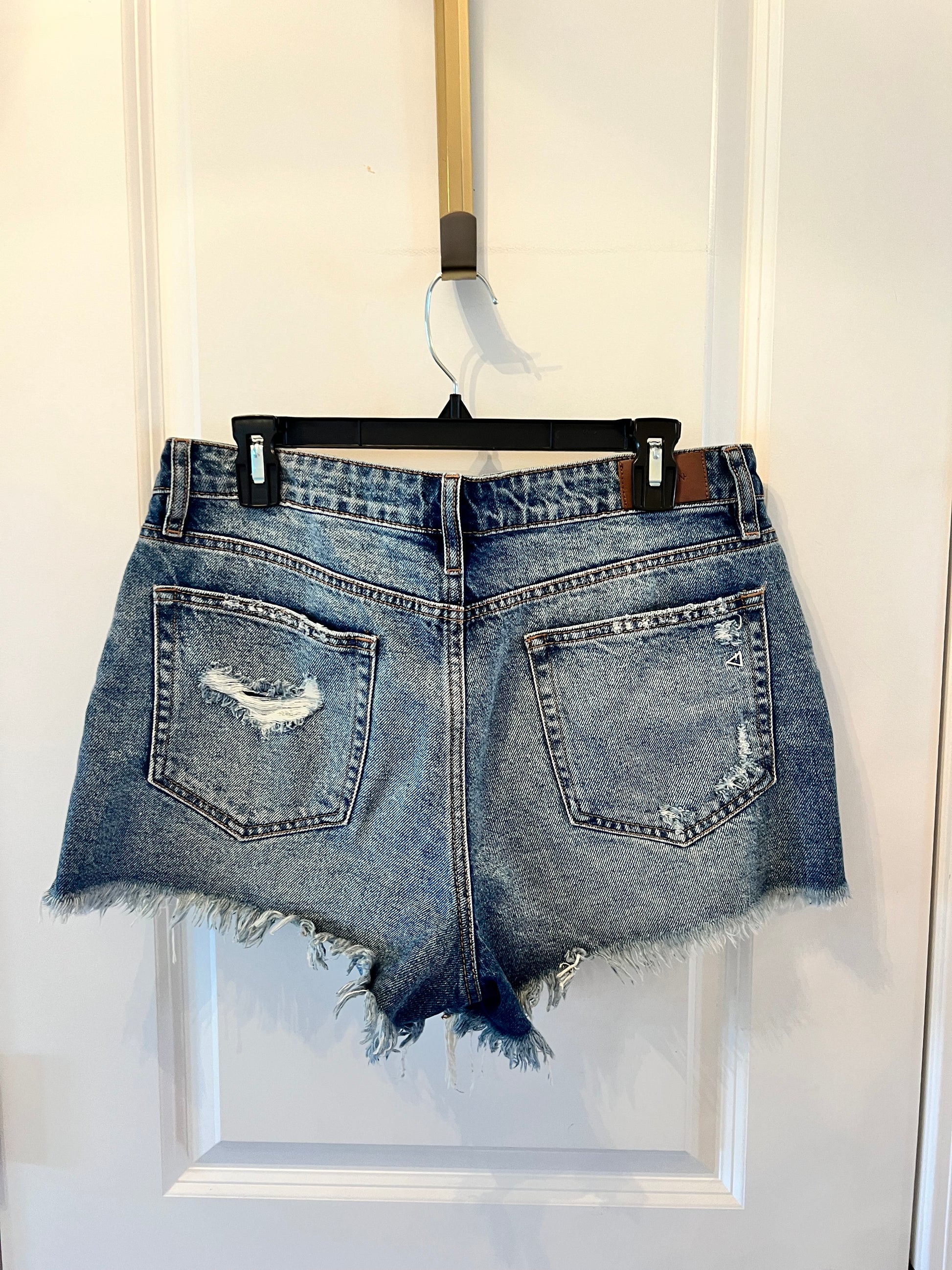 Hidden Button Fly Distressed Denim Shorts Women’s Size Large