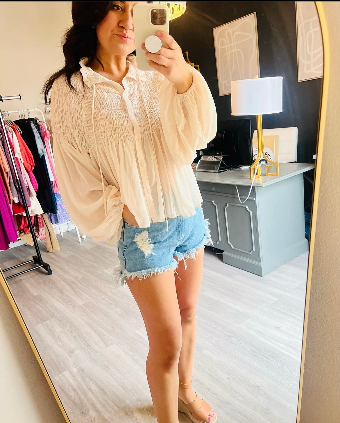 HYFVE Smock Peasant Top Women’s Size Medium 8-10 Cream