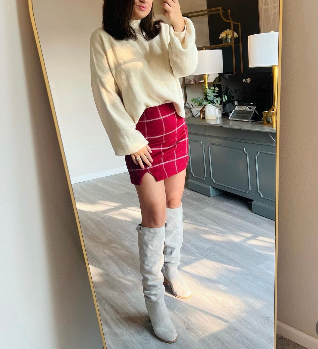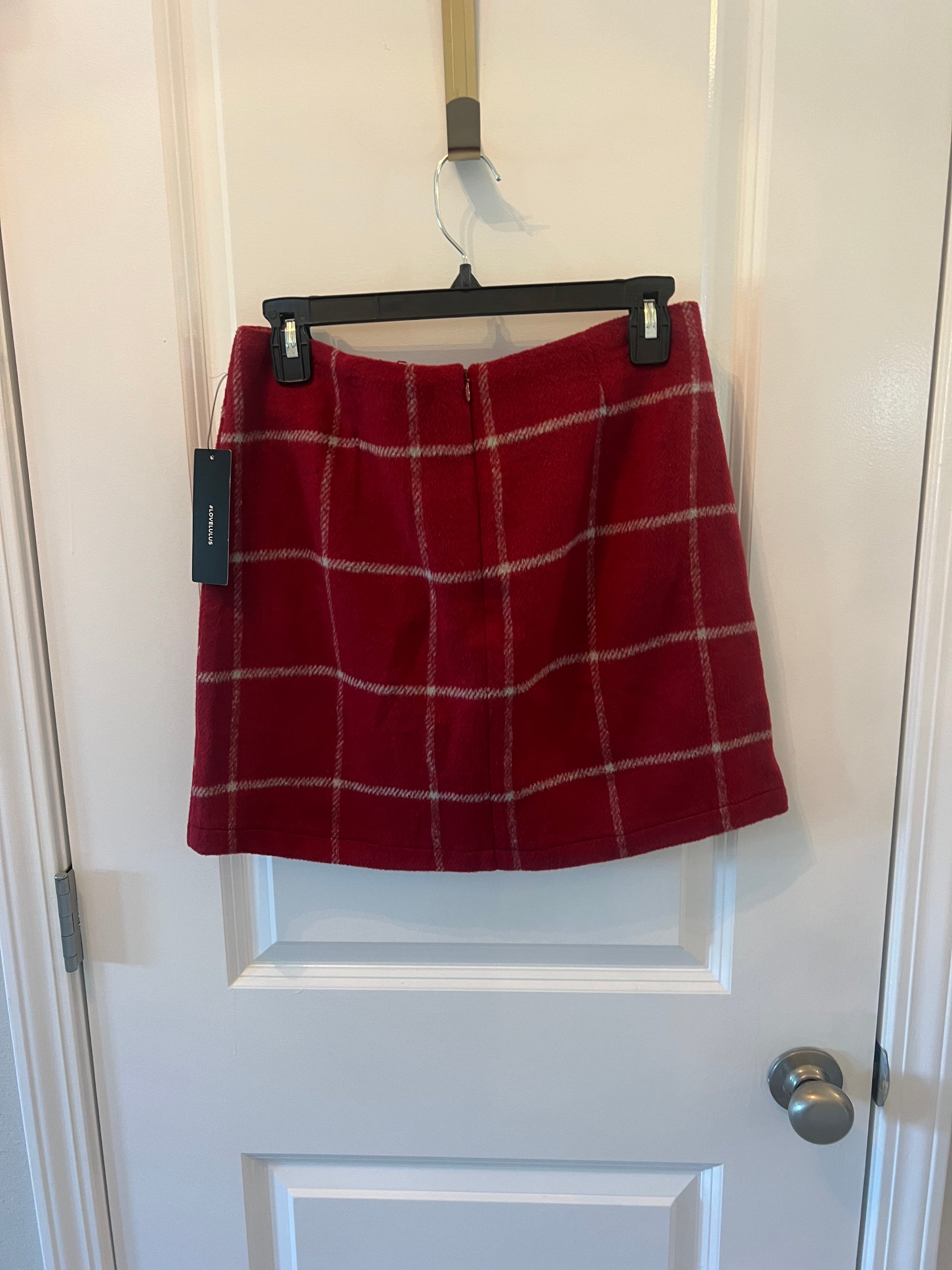 Lulu’s Spence Plaid Mini Skirt Women’s Size Medium Wine Red