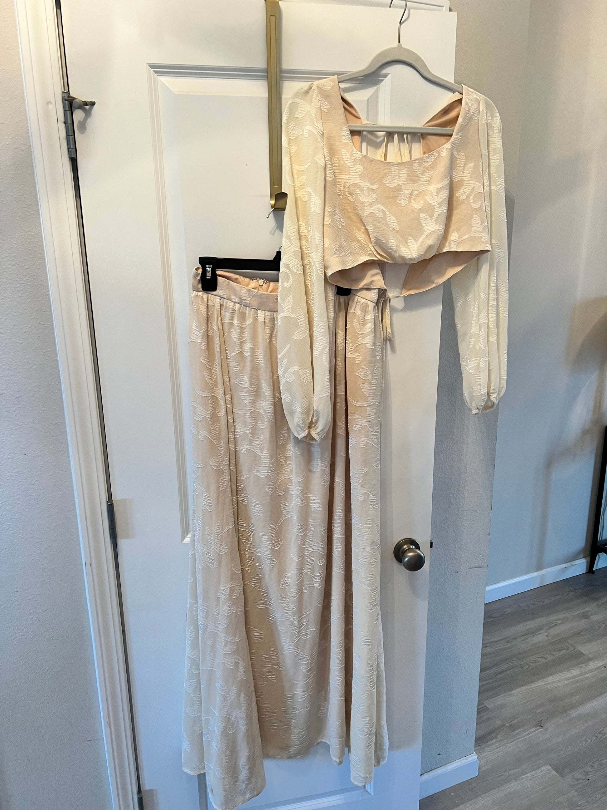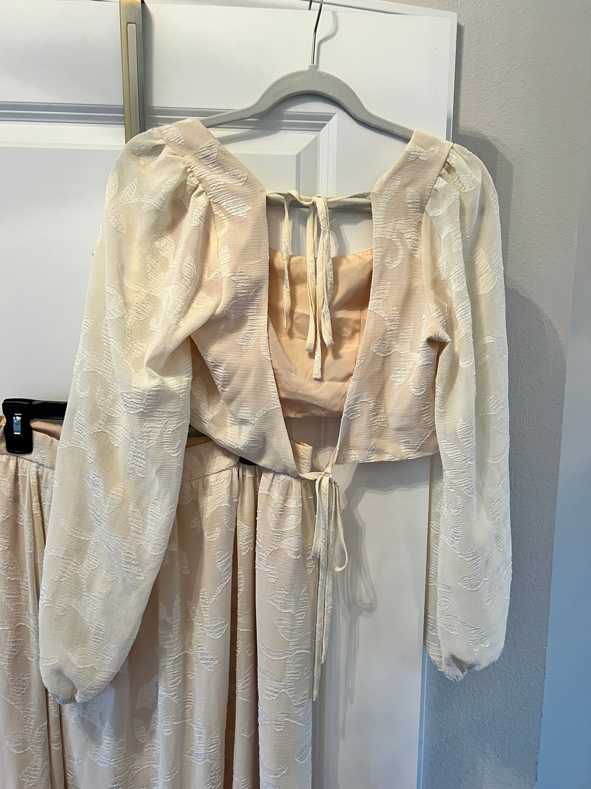Floral Matching Set Maxi Skirt w Crop Top Women’s Size Large Cream