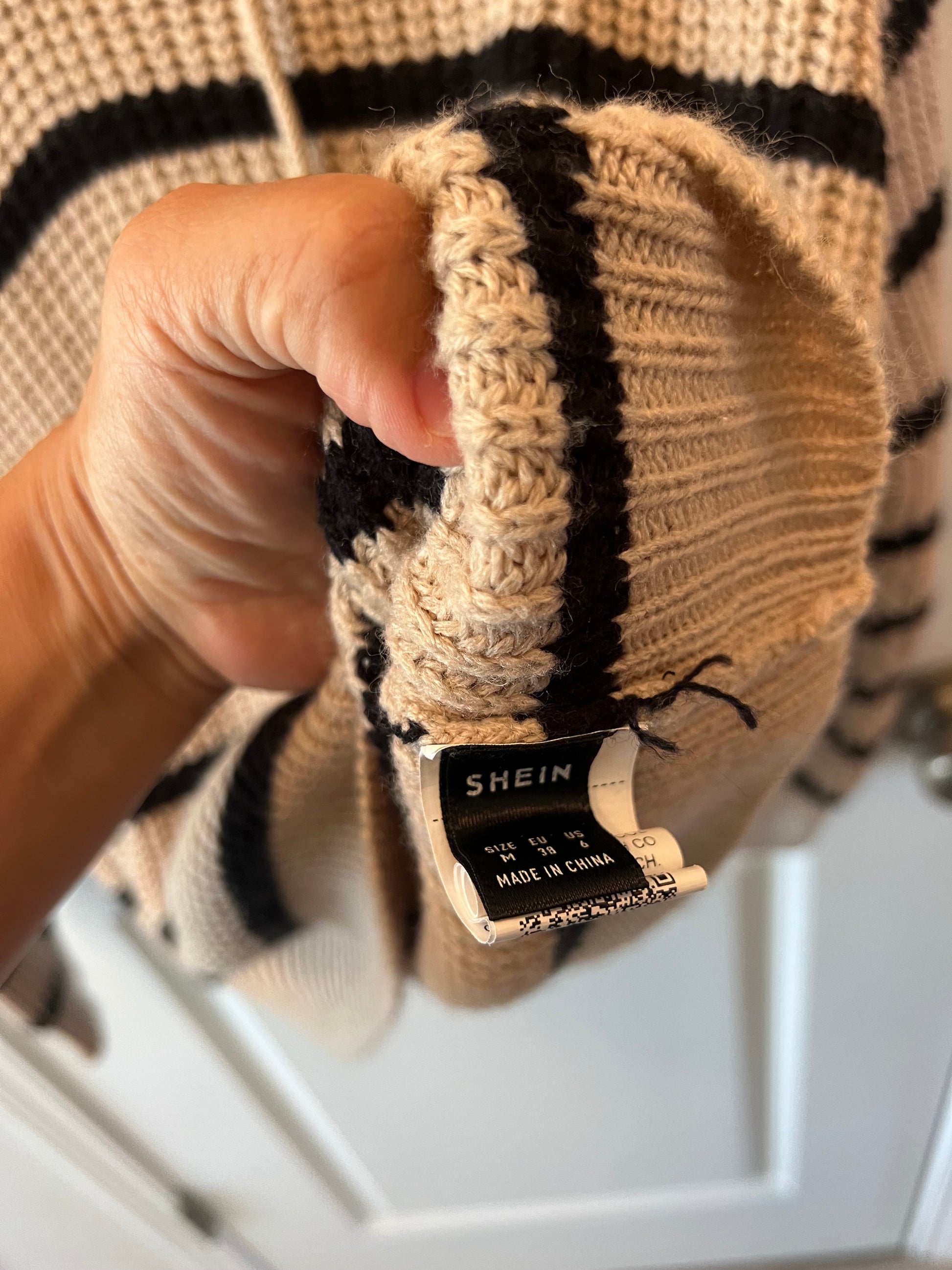 Loose Knit Stripe Hooded Sweater Women’s Size Medium Tan