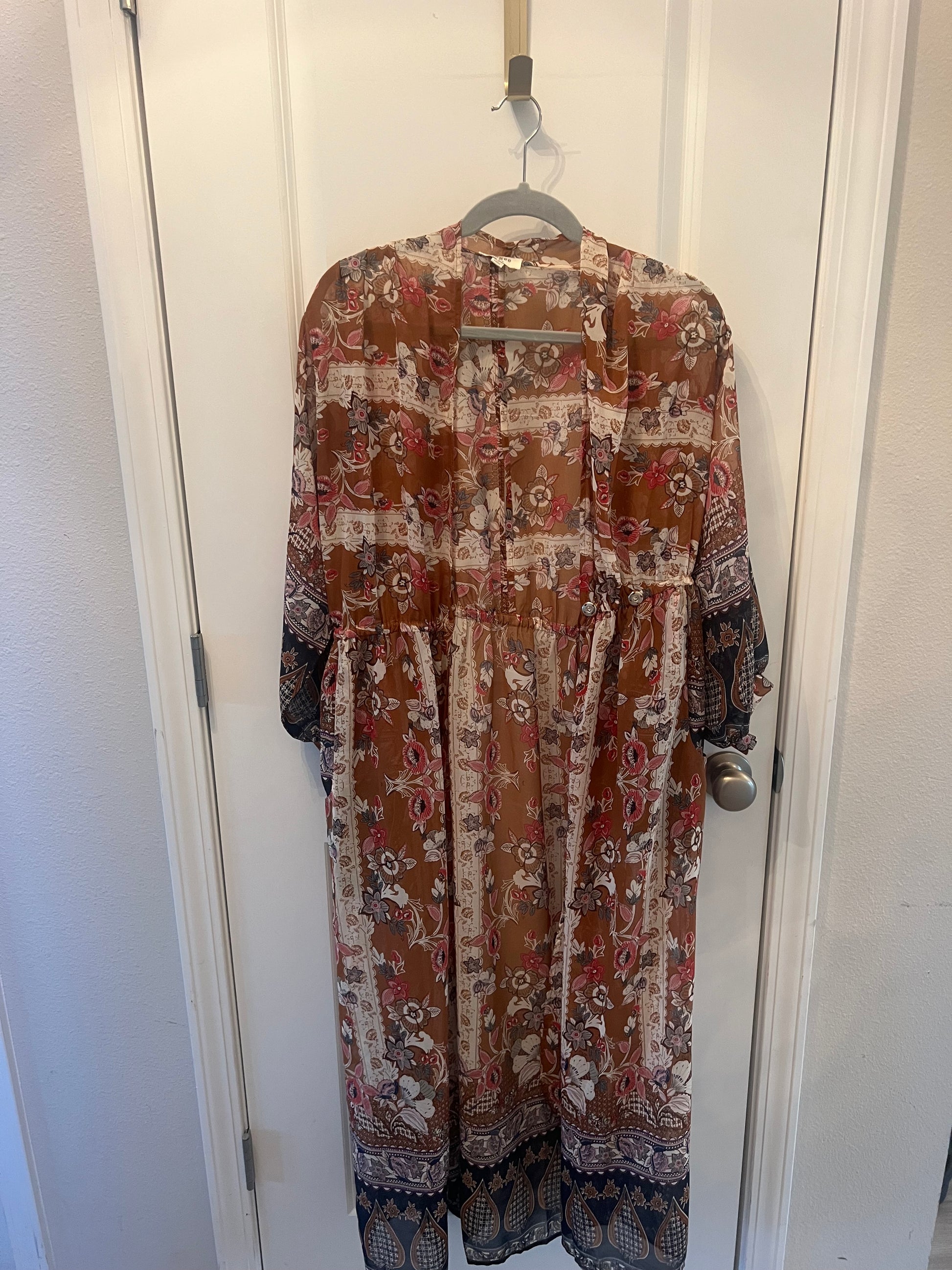 Umgee Floral Duster Kimono Women’s Size Medium Brown